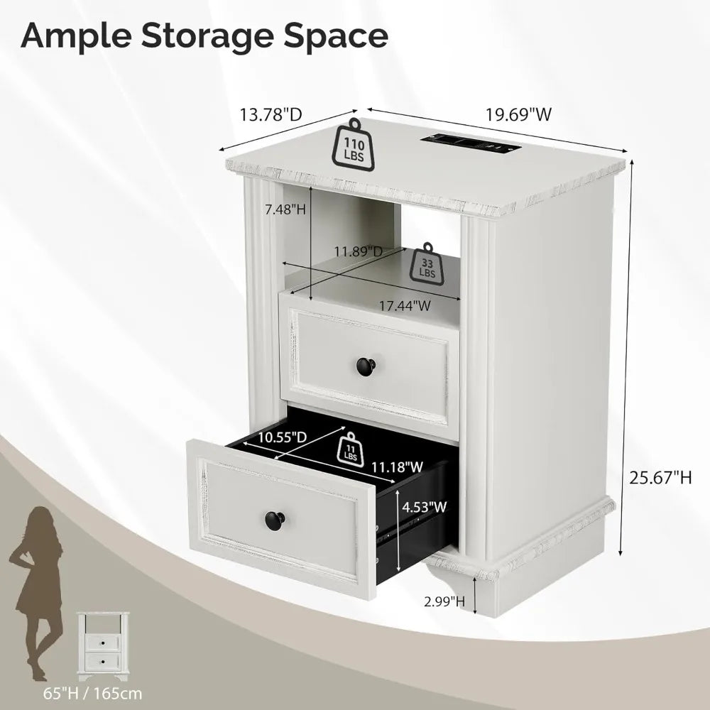 Ticify Nightstand Charging Station Wood Bedside Table