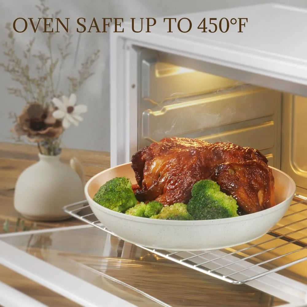 - PFAS/PTFE/PFOA-free ceramic coating delivers healthy, lazy-oil cooking; you can sauté, sear, and simmer with less sticking and easier cleanup.
