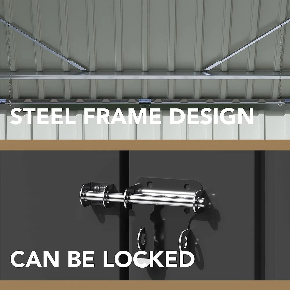 - Engineered with alloy steel and iron, this shed delivers lasting strength for busy outdoor spaces, with a waterproof, low-maintenance exterior.