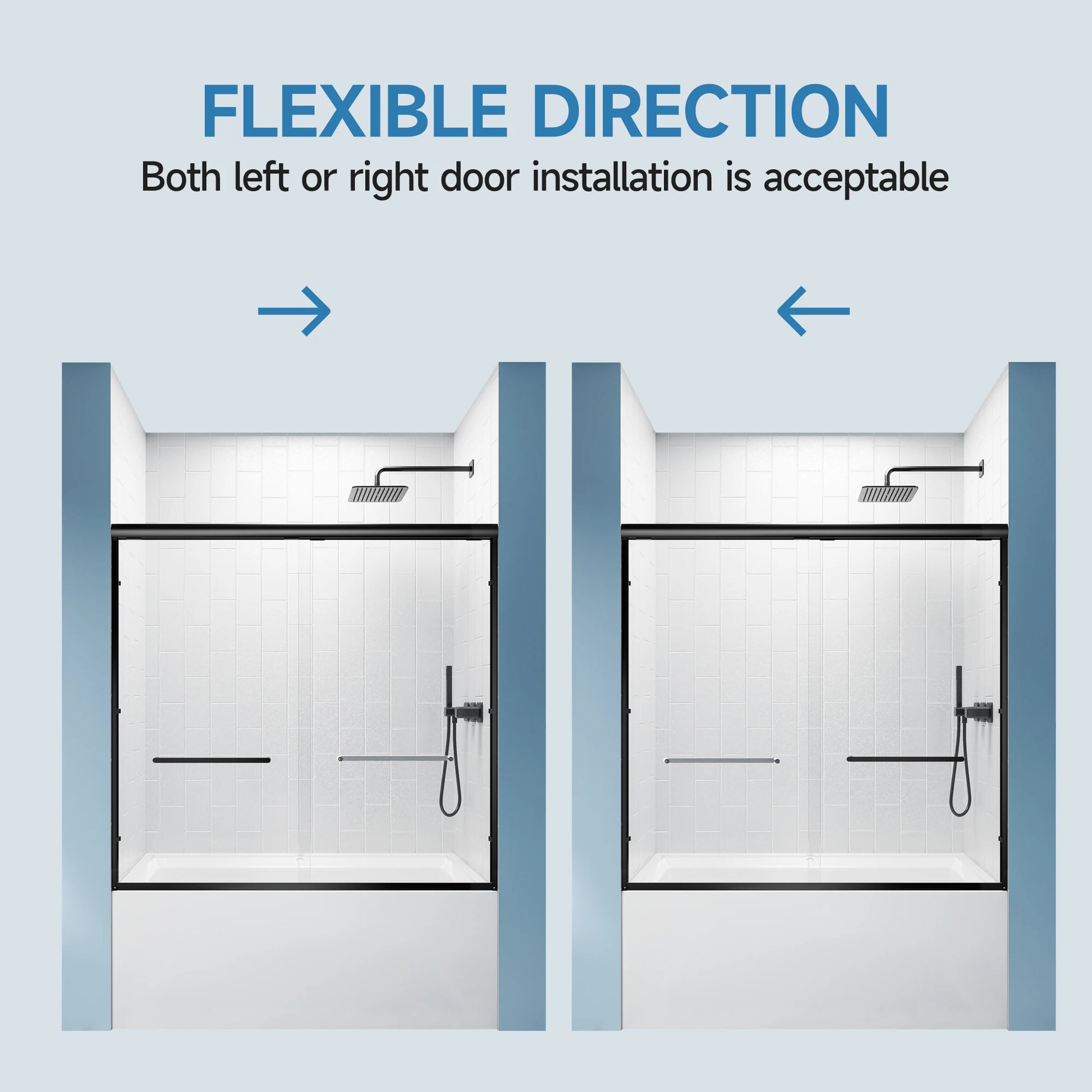 - Durable aluminum frame with a matte black finish gives you lightweight strength, rust resistance, and lasting stability for your double sliding shower setup.
