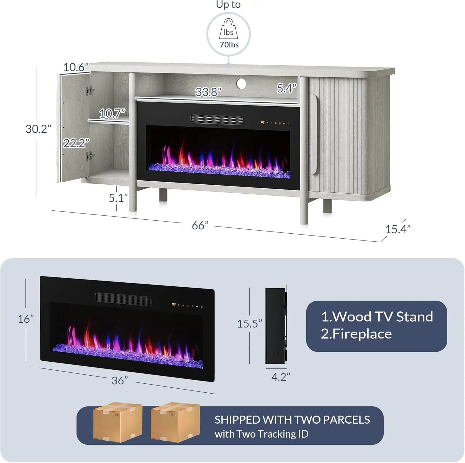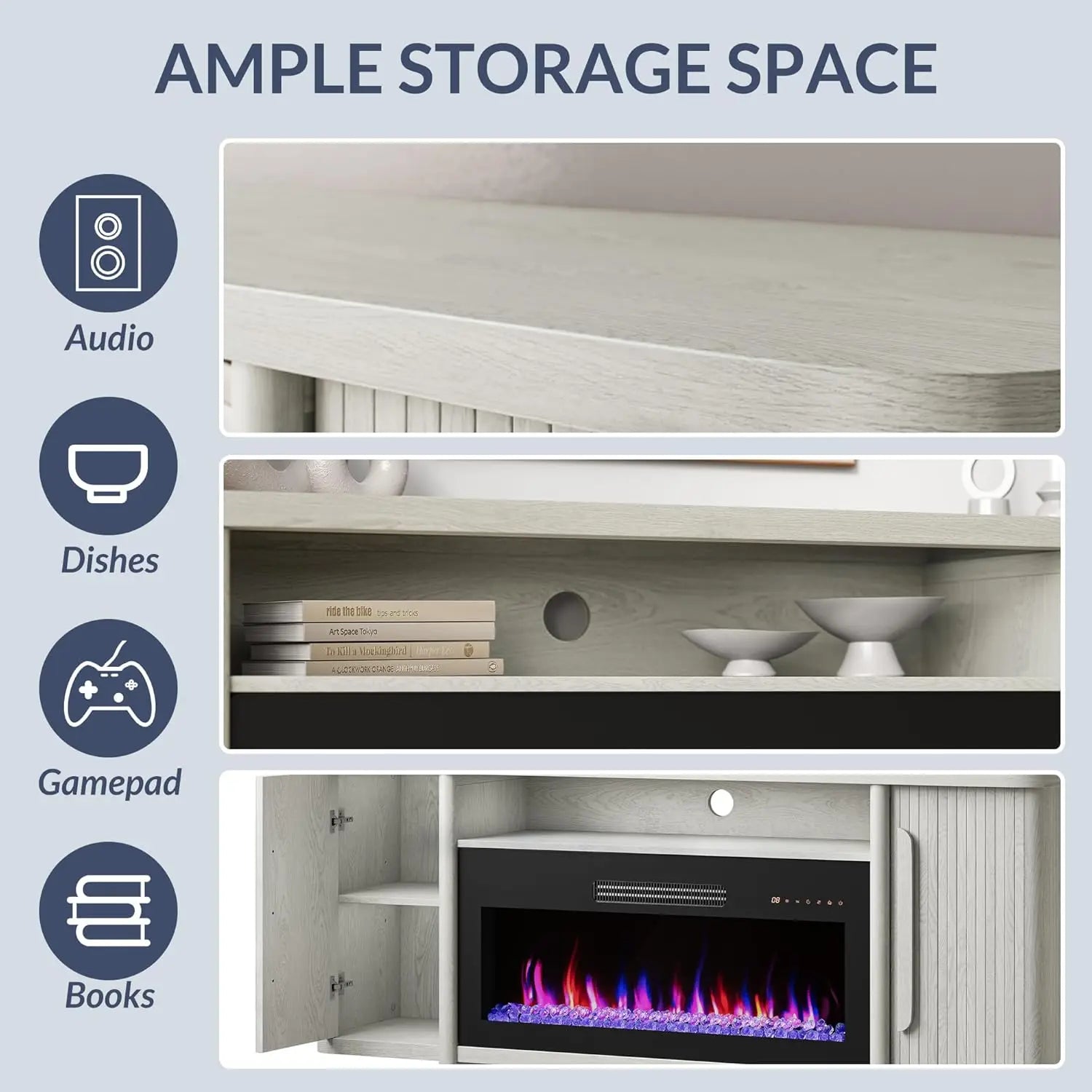 Create a warm, organized living space with this TV Stand With Electric Fireplace Heater and wood console that blends modern design with cozy comfort.