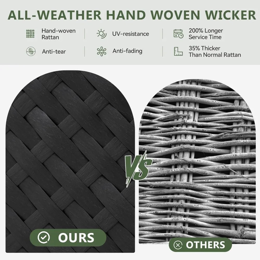- Weather-resistant wicker and plush cushions provide durable seating that stands up to sun, rain, and everyday use, keeping your outdoor space looking fresh throughout the seasons, with removable covers for easy cleaning.