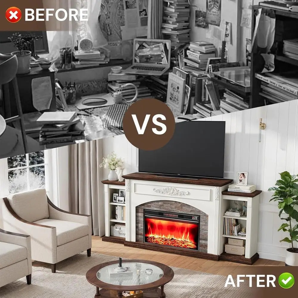 ZHUXIANG Electric Fireplace TV Console With Wooden Mantel