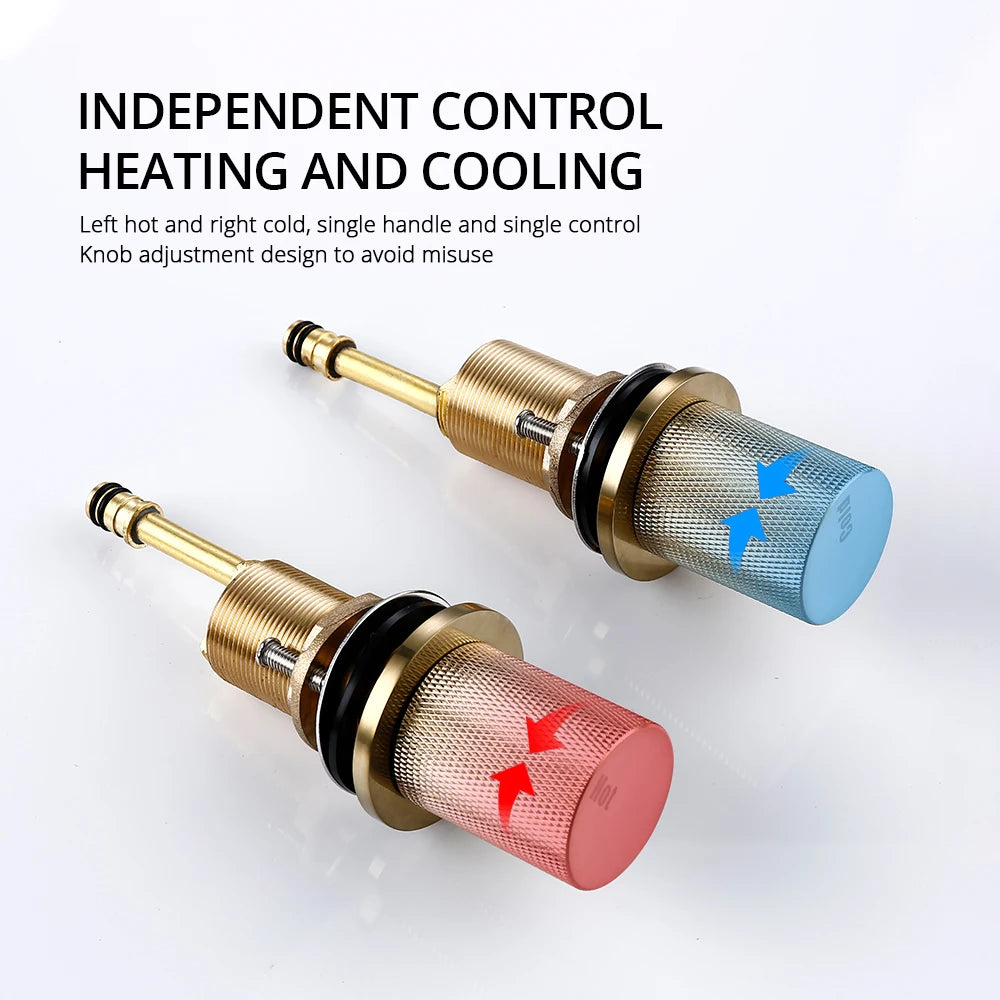 - Dual-handle operation with a ceramic cartridge delivers precise hot and cold control for consistent temperatures and efficient water use.