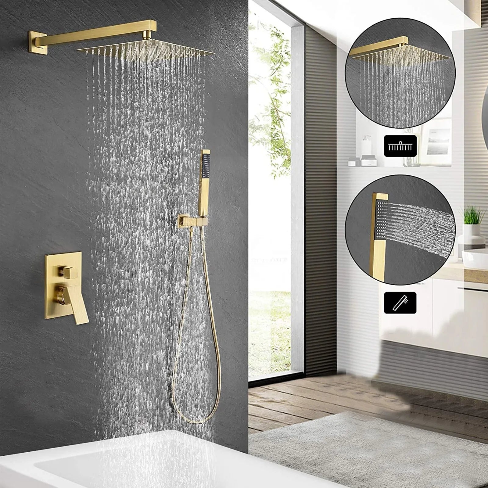 Upgrade your daily shower with a wall-mounted faucet set featuring a 16-inch square rain head, dual spray patterns, and precise control.