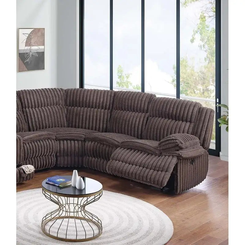 Turn your living room into a cozy, conversation-ready haven with this chocolate fur-like corduroy U-shaped sectional that seats five and invites relaxed, all-day lounging.