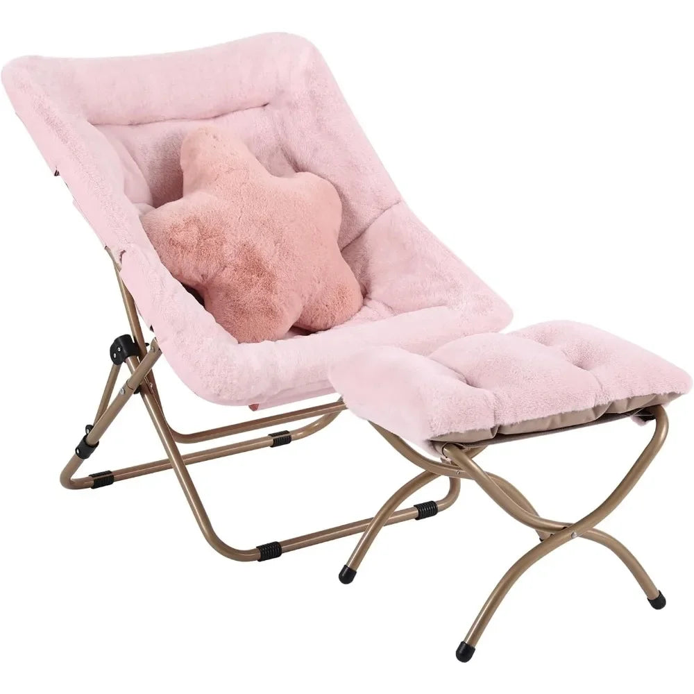 - Luxurious comfort you can feel: the pink seat is lined with soft faux fur, a deep, wide surface, and a cushioned pillow to support your waist while you lounge.