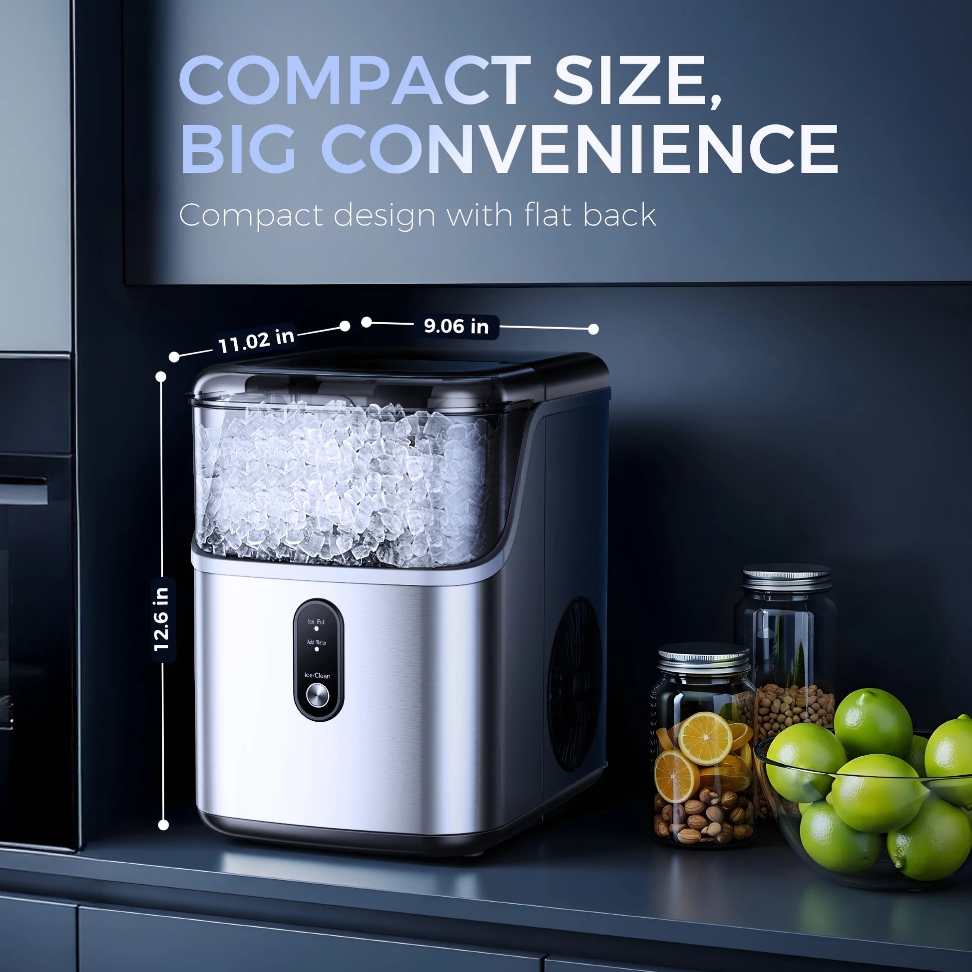 - Smart indicators—ICE FULL and ADD WATER—plus a 15-minute self-cleaning cycle and removable top cover for thorough cleaning; a large viewing window keeps you in the know.