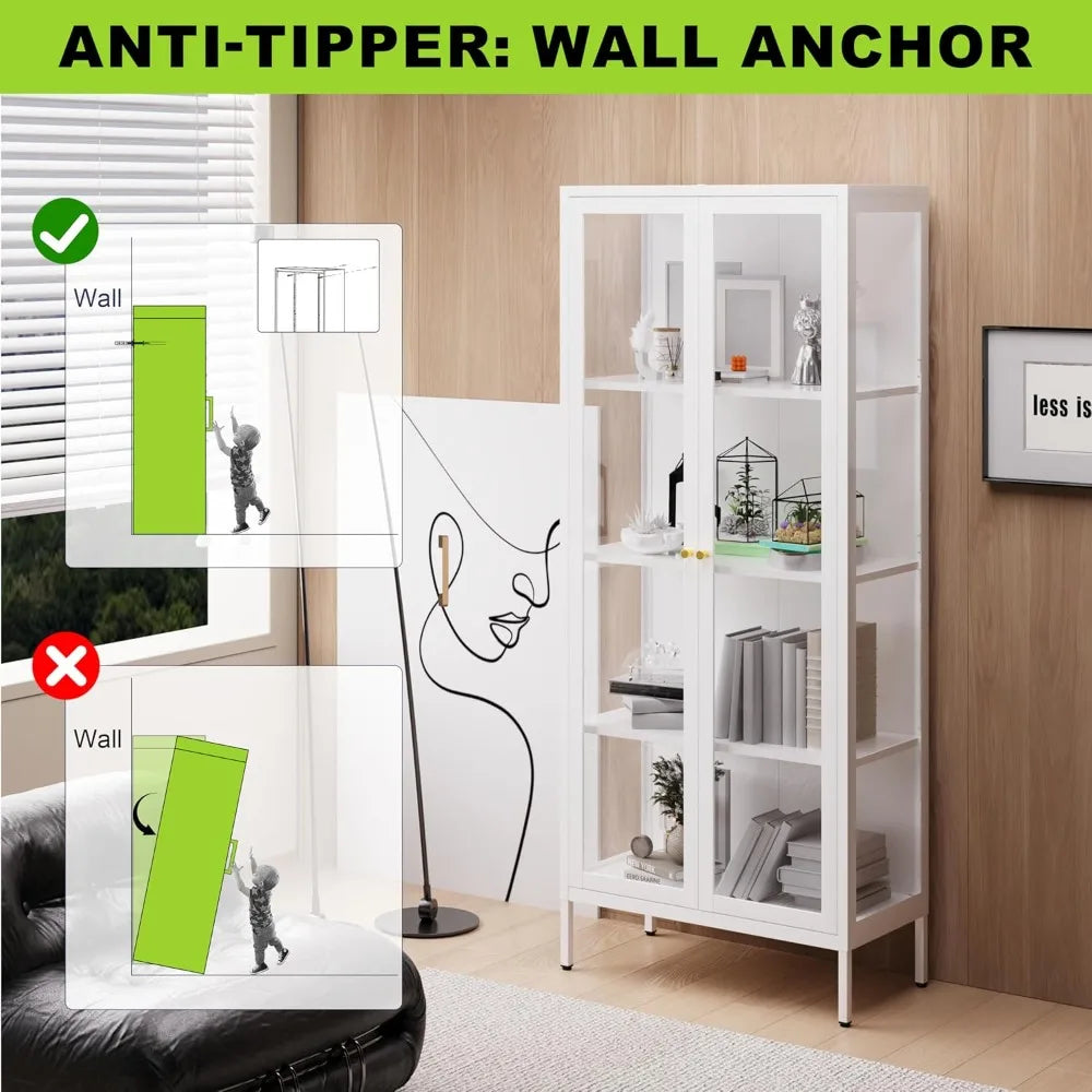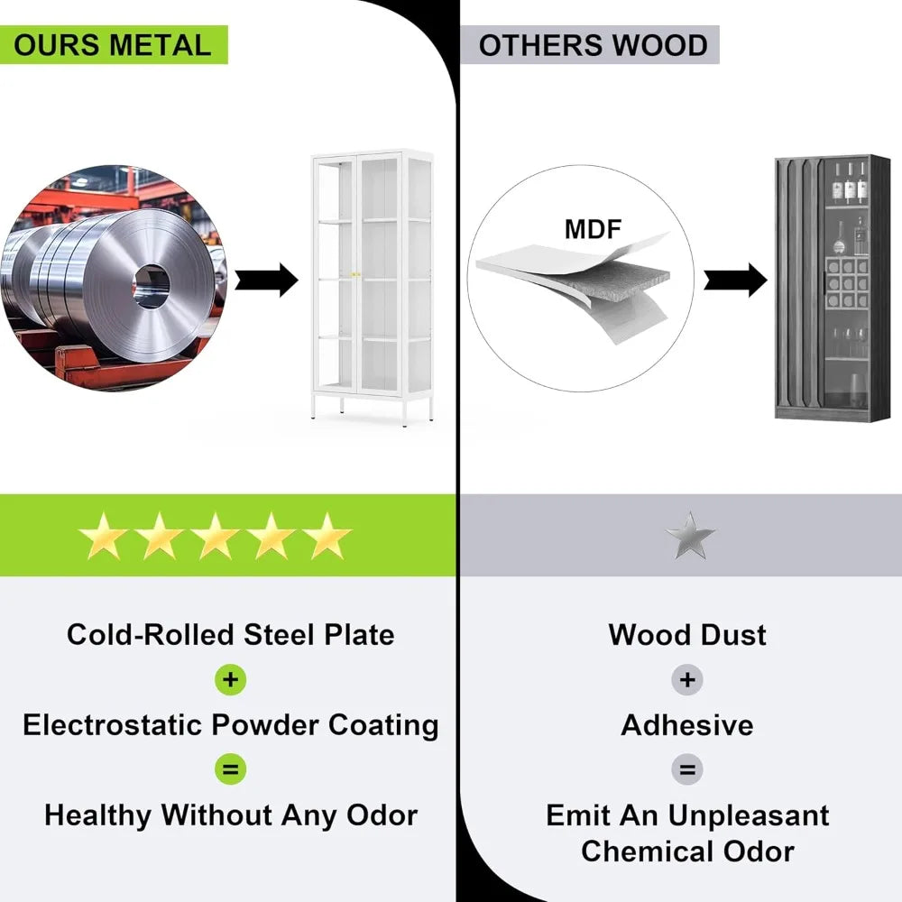 Elevate any room with the MKDK Glass Door Display Cabinet, a 4-tier tempered-glass curio that showcases your treasures in sleek, secure style.