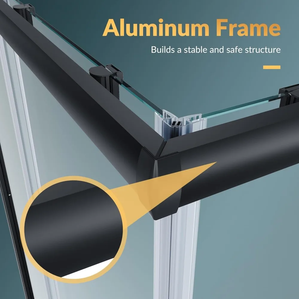 - Corner double sliding doors maximize your entry space in small baths, while satin-black brushed nickel hardware adds a sleek, modern touch and makes installation straightforward.