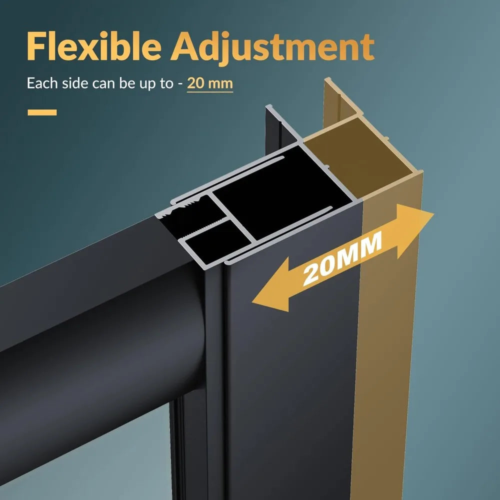 - Adjusts up to 20 mm on each side for a precise, snug fit in your 34x34-inch opening (72 inches high), with simple leveling during installation.