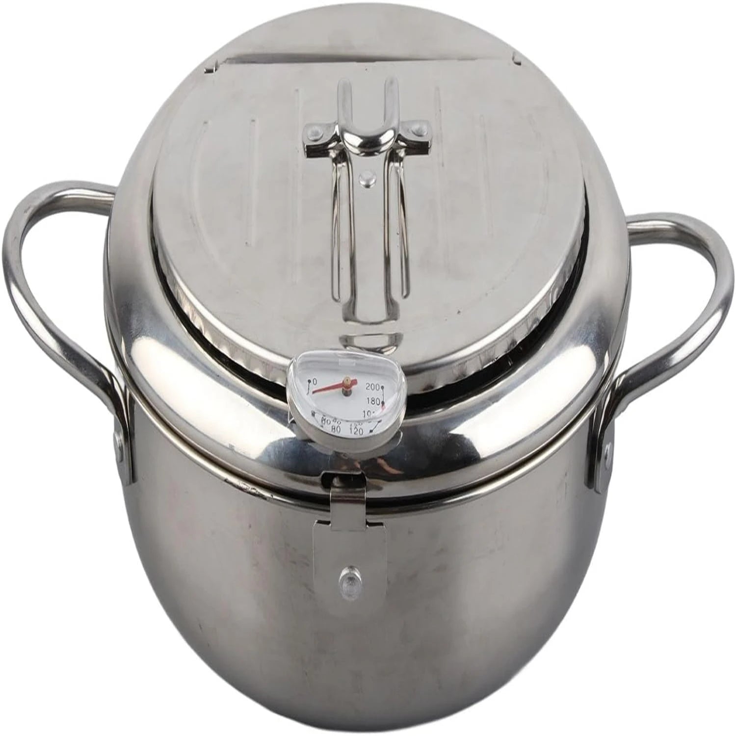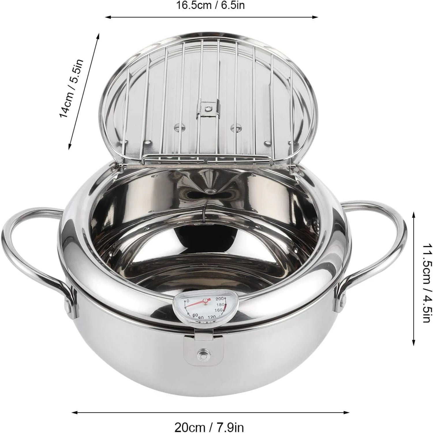 LISM Japanese Tempura Frying Pot With Thermometer And Lid Stainless Steel
