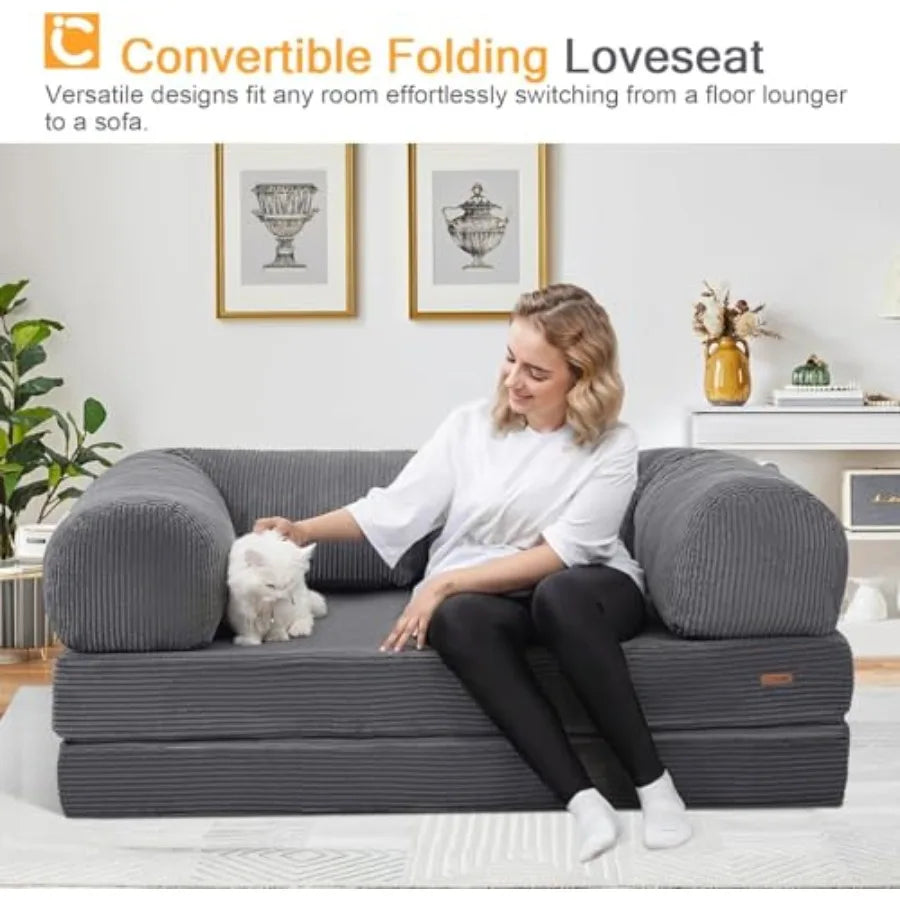 Transform your living space with this Futon Sofa Bed 4-In-1 Floor Foldable Sofa Couch Sleeper, designed for flexible living and effortless hosting.