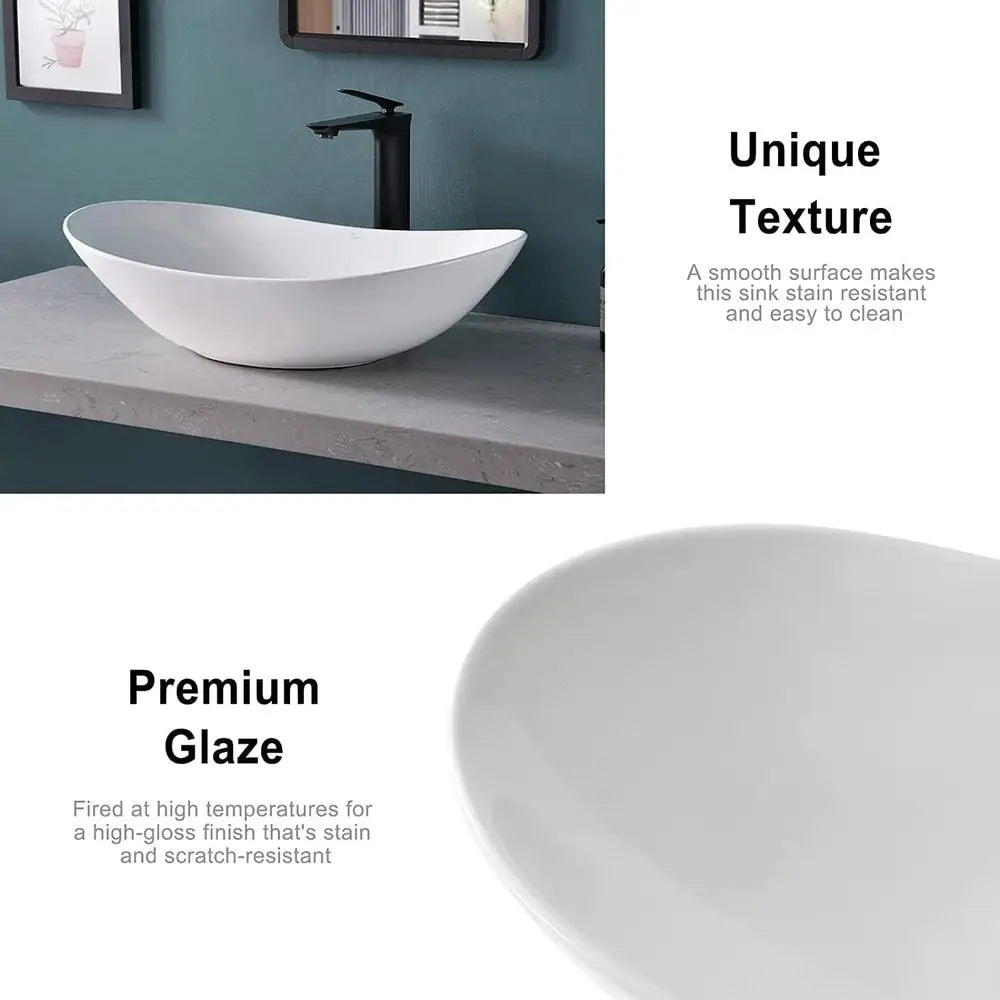 Ceramic Oval Vessel Sink With Pop Up Drain Above Counter