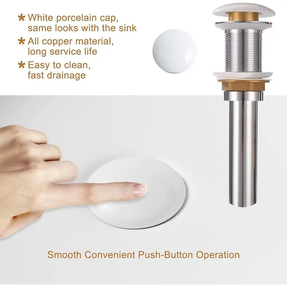- Includes a pop-up drain: You get a ceramic-surfaced drain that matches your sink in size and color, delivering quick drainage and debris filtration.