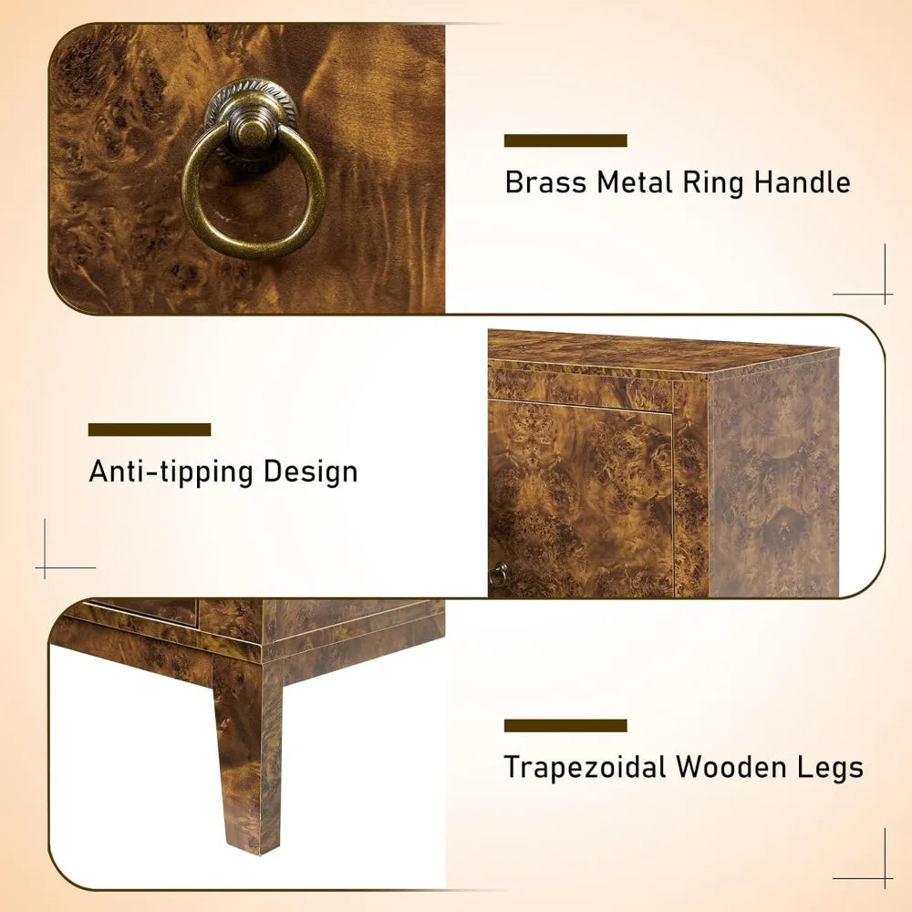 - Your space gains a unique mappa burl wood finish that delivers a rich, iridescent grain and a statement look in dining rooms, living rooms, and entryways, with each piece offering its own natural pattern.