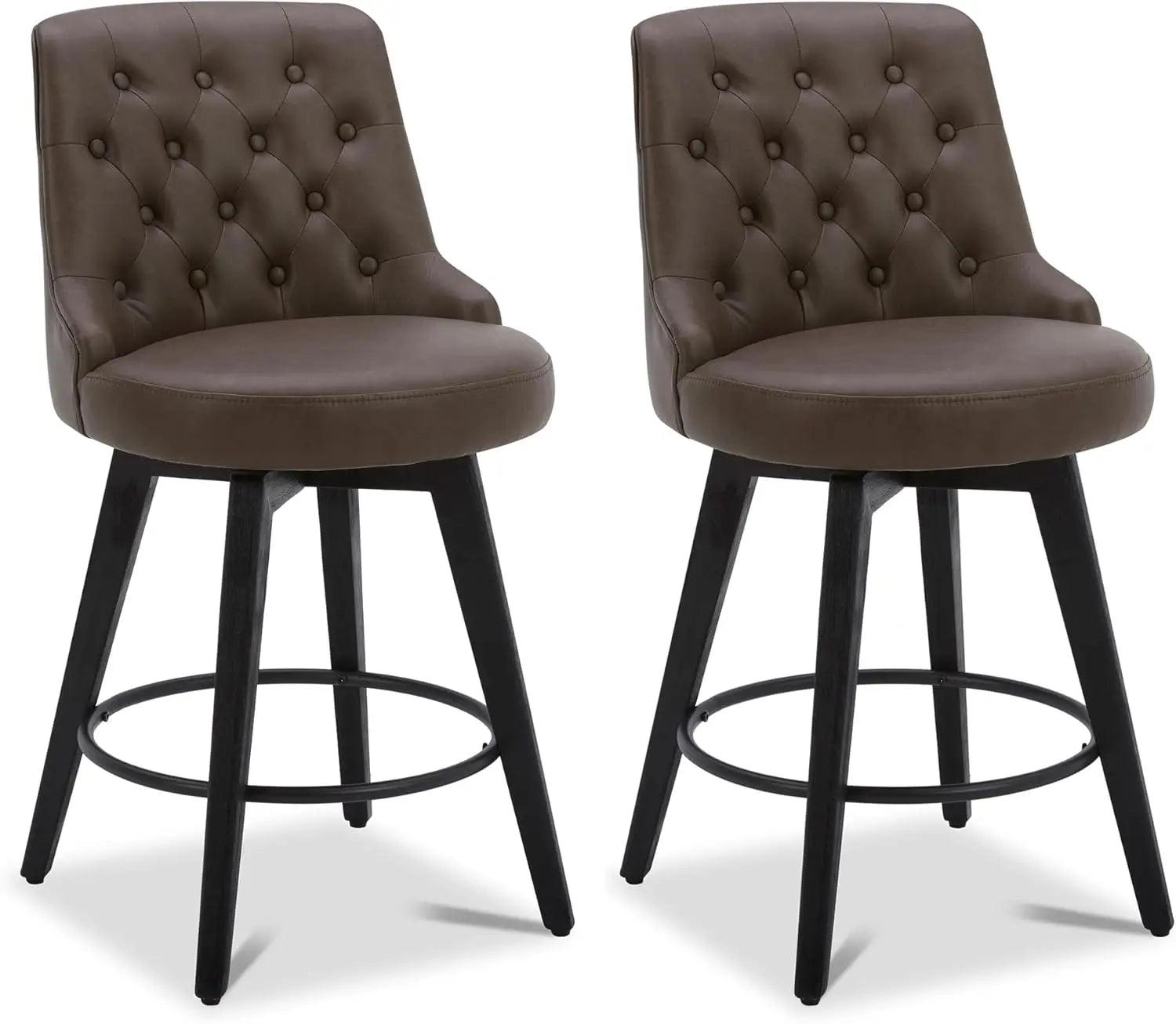 - Designed for your daily comfort, the deep button-tufted back and padded seat pair with a 360-degree swivel and a metal footrest to keep conversations flowing.