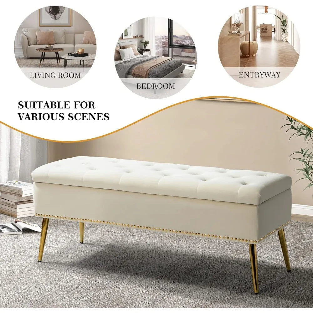 Transform clutter into chic comfort for your space with a velvet storage ottoman bench that blends form and function.