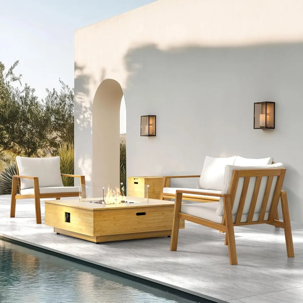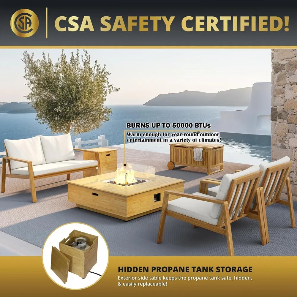 - SHERBECK craftsmanship gives you a durable wood fire pit table with an integrated propane tank cover for a seamless centerpiece.