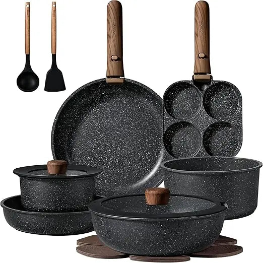 Upgrade your kitchen efficiency with the Carote Nonstick Pots and Pans Set with Detachable Handles.