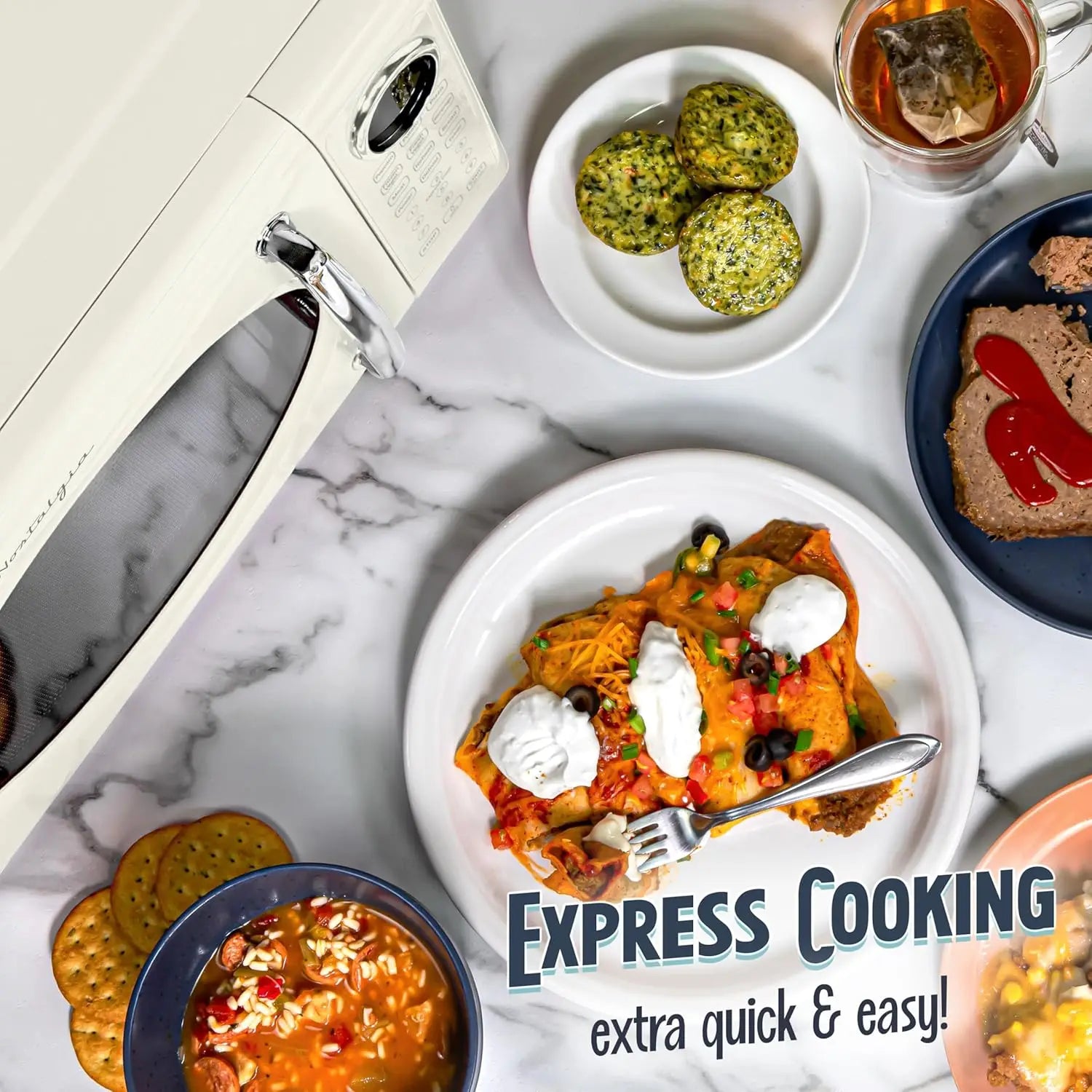 Power through mealtime with XMSJ's compact 700W microwave, designed to fit your counter and your busy schedule.