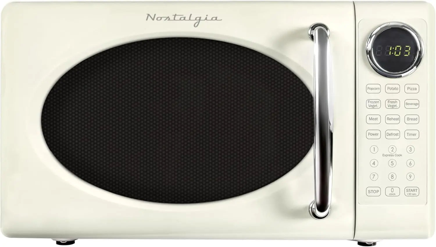 - 0.7 cu ft interior in Ivory finish with a rotating glass turntable delivers even heating for bowls, plates, and casseroles, and fits neatly on most countertops.