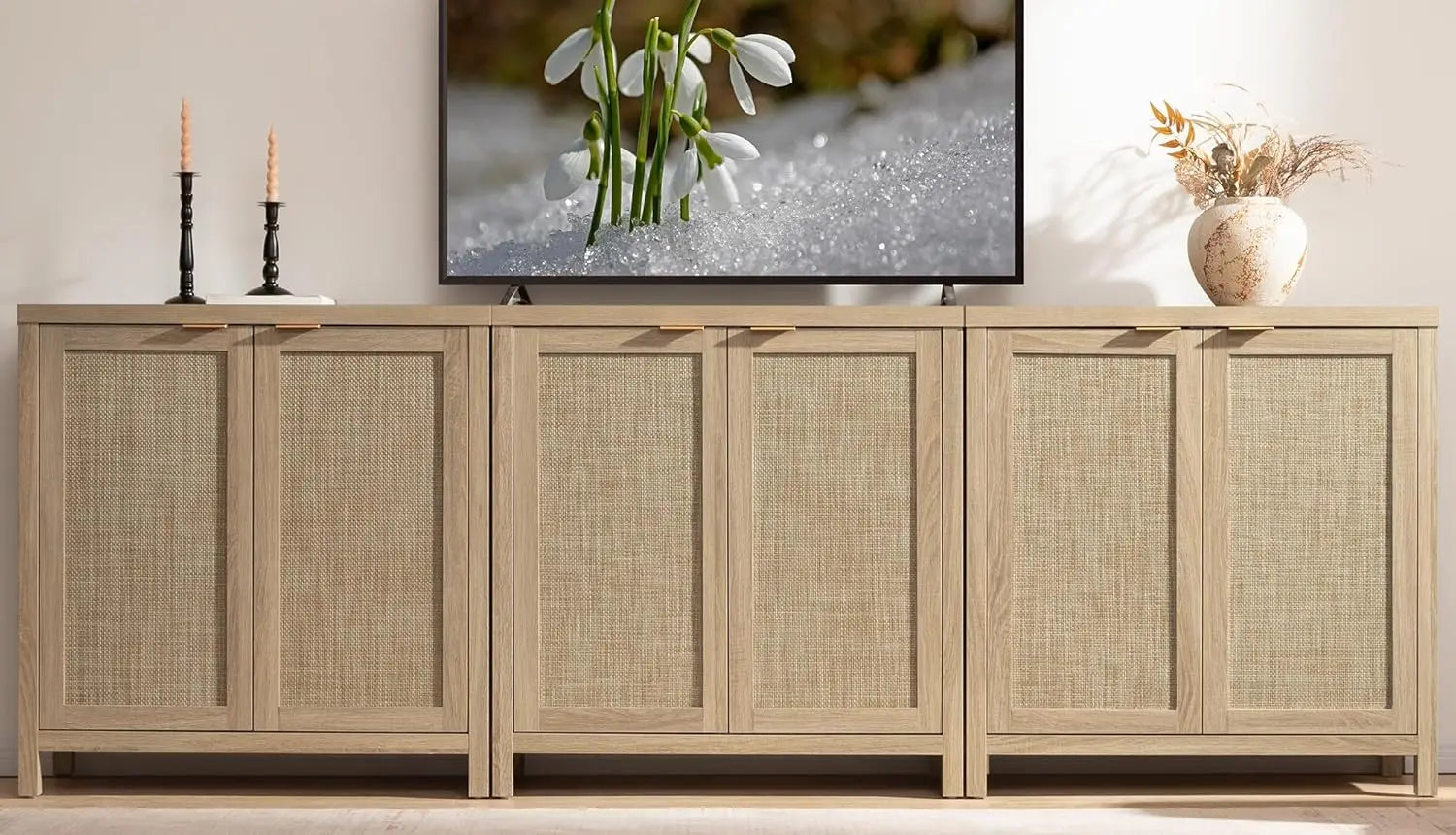 Sideboard Buffet Coffee Bar Cabinet 3 Piece Farmhouse Boho Rattan Credenza