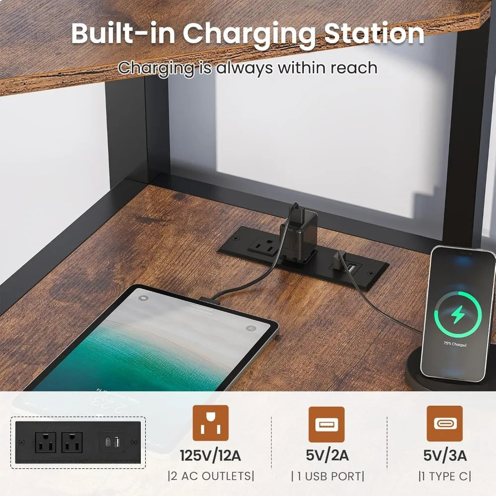 - Built-in charging: Two AC outlets, one USB, and one Type-C port let you power laptops, phones, and tablets without clutter.