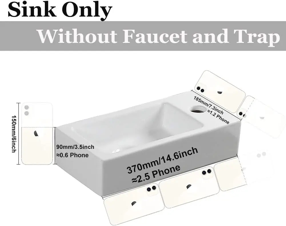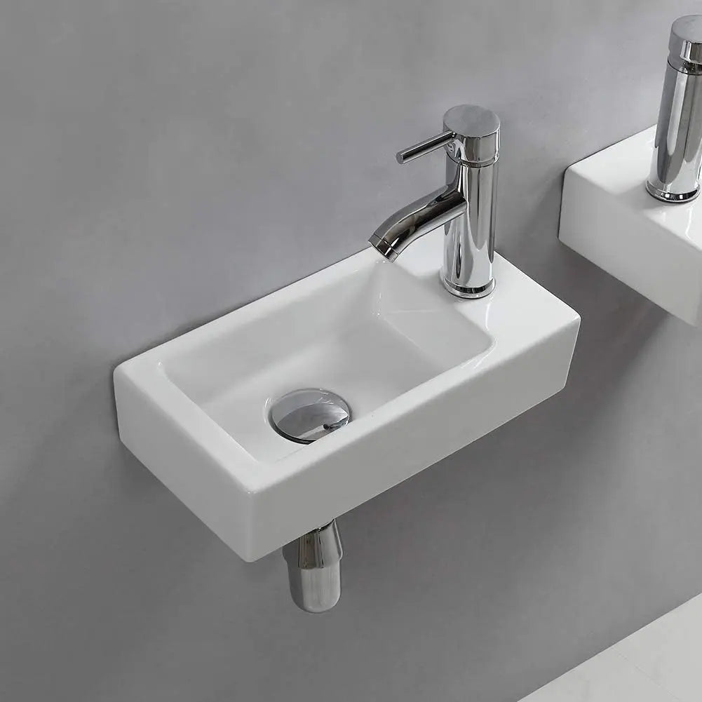 Wall Mounted Ceramic Bathroom Sink Rectangle Wash Basin Drain