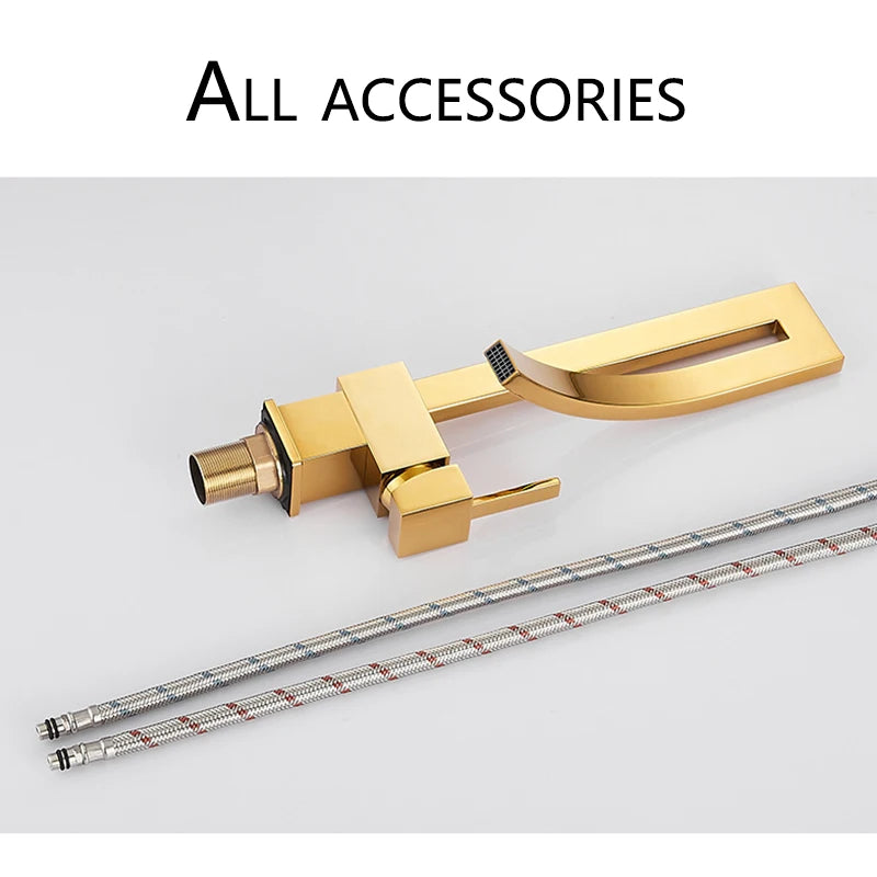 Wanmivezlo Brass Basin Faucet Deck Mounted Waterfall Mixer Taps
