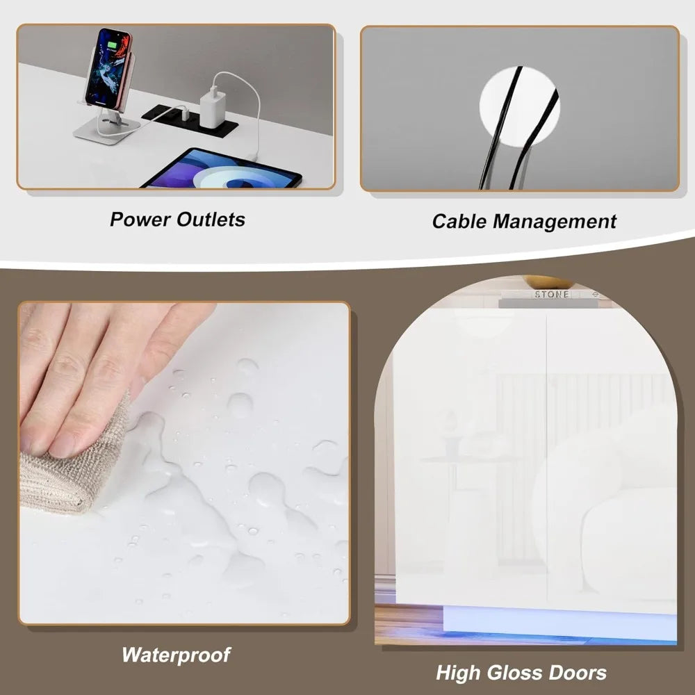 LED Illuminated Sideboard With Charging Station White Wood Dining Cabinet
